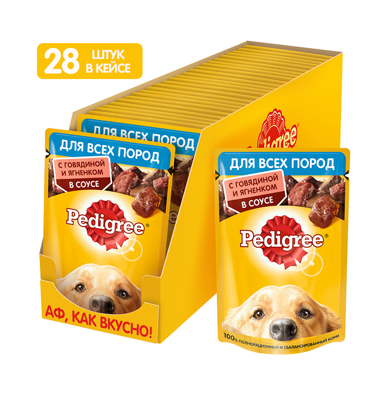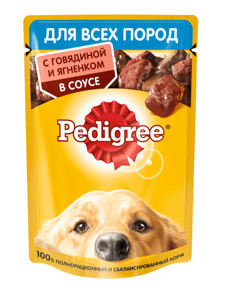 Влажный корм Pedigree для взрослых собак всех пород (говядина и ягненок) содержит всё, что нужно питомцам старше года. Рацион корма оптимально сбалансирован и насыщен необходимыми витаминами и минералами. И, конечно же, мясные кусочки в соусе такие вкусные, что нос оближешь!