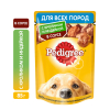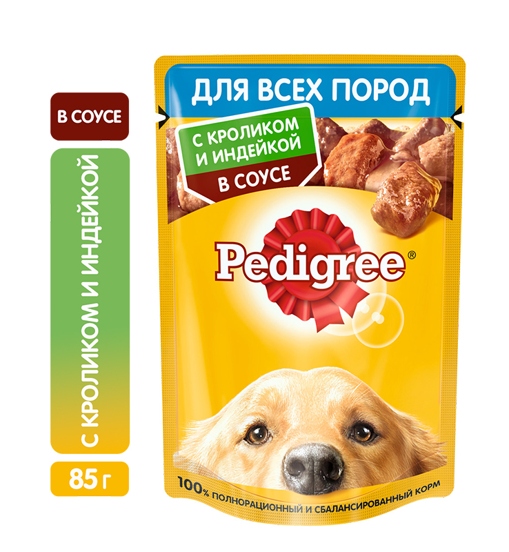 Влажный корм Pedigree для взрослых собак всех пород (кролик и индейка) содержит всё, что нужно питомцам старше года. Рацион корма оптимально сбалансирован и насыщен необходимыми витаминами и минералами. И, конечно же, мясные кусочки в соусе такие вкусные, что нос оближешь!