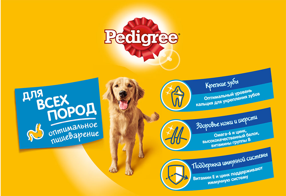 Сухой корм Pedigree для взрослых собак всех пород (говядина) - это полезная и вкусная еда, приготовленная с учетом физиологических потребностей собак, еда, которой нужно кормить регулярно.