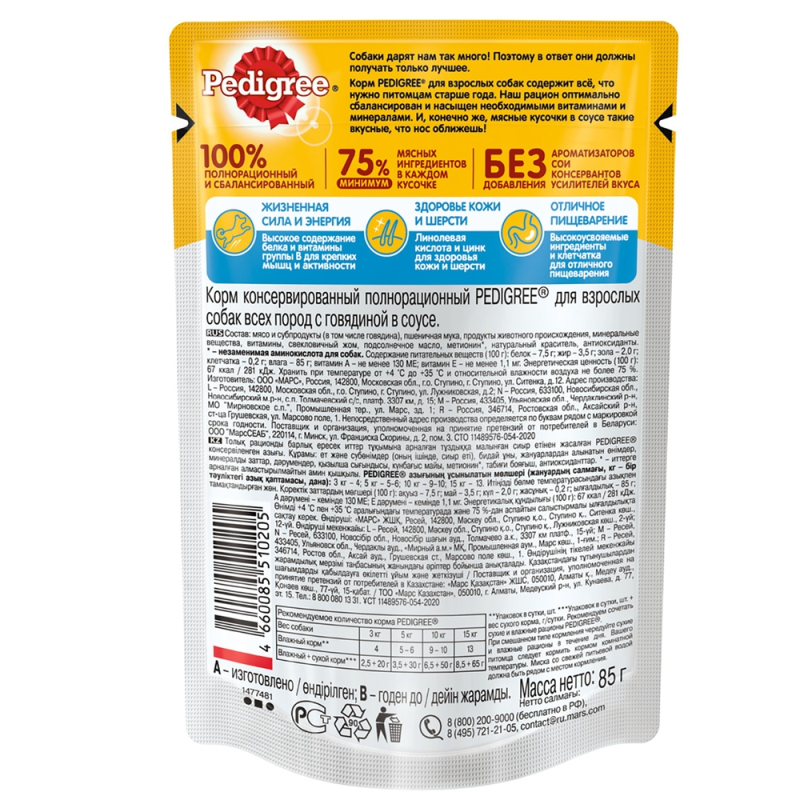 Pedigree пресервы для собак (говядина) 85г