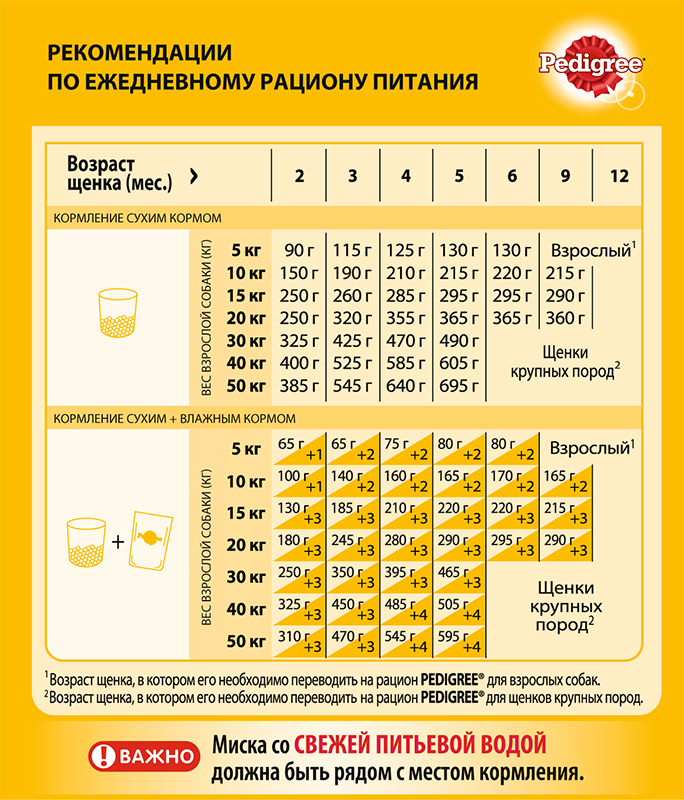 Ежедневное сочетание сухих и влажных рационов PEDIGREE — залог здоровья вашего любимца! Следите, чтобы у Вашего питомца всегда была чистая, свежая питьевая вода.