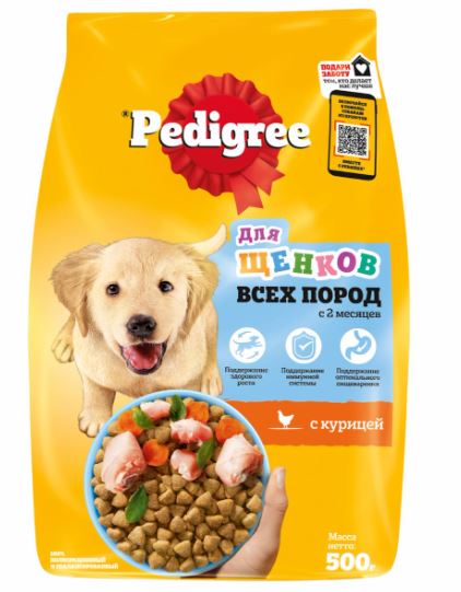 Pedigree сухой корм для щенков всех пород от 2 месяцев, с курицей, 500гр