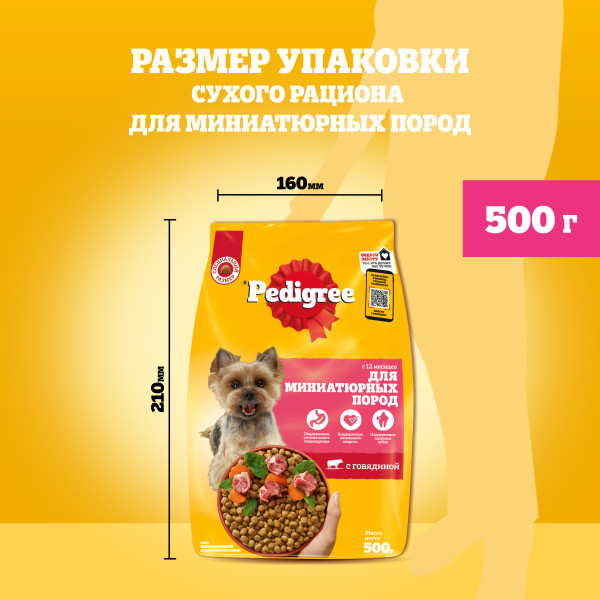PEDIGREE Сухой корм для взрослых собак мелких пород с говядиной 500 г