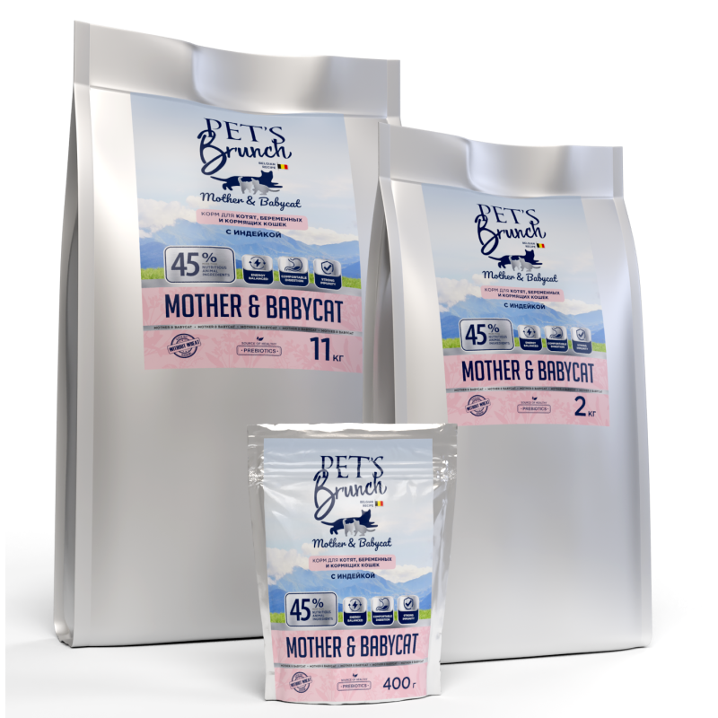 Pet's Brunch Корм сухой для котят, беременных и кормящих кошек (индейка), 400г