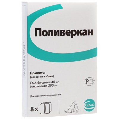 Ceva Поливеркан Антигельминтное средство для профилактики и лечения гельминтозов у собак и кошек, 8 кубиков