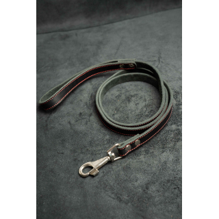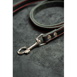 Поводок из натуральной кожи, цвет черный с красной нитью 120см