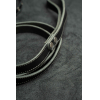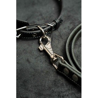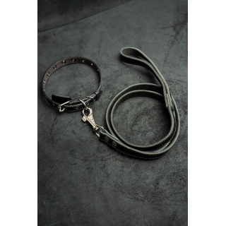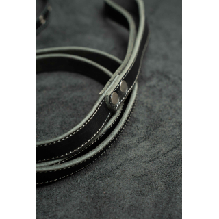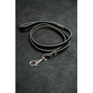 Поводок из натуральной кожи, цвет черный с серой нитью 120см