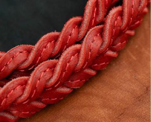 Поводок из натуральной кожи, цвет красный с красной нитью 120см