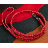 Поводок из натуральной кожи, цвет красный с серой нитью 120см