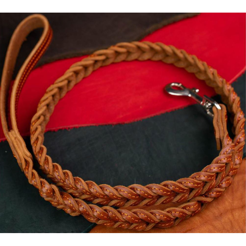 Поводок из натуральной кожи шириной 2,5 см и длиной 120 см — практичное и долговечное решение для прогулок с собакой. Модель «02‑двойное плетение» выполнена в элегантном светло‑коричневом цвете «коньяк» и украшена строчкой рыжей нитью, которая добавляет выразительность и делает дизайн более живым. Натуральная кожа высокого качества обеспечивает прочность и комфорт, а увеличенная ширина 2,5 см особенно удобна для контроля крупных и сильных питомцев. Длина 120 см позволяет уверенно управлять собакой, сохраняя свободу движений. Такой поводок станет отличным выбором для владельцев, ценящих надежность, стиль и натуральные материалы.