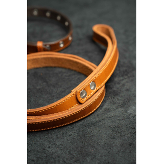 Поводок из натуральной кожи, цвет светло-коричневый с рыжей нитью 120см
