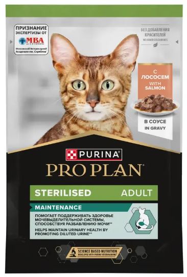 Команда квалифицированных ветеринарных специалистов разработала влажный корм для стерилизованных кошек PRO PLAN® Sterilised MAINTENANCE с лососем. Этот полнорационный корм для кошек разработан с учетом их потребностей в высококачественном белке, а также витаминах и минералах, необходимых для нормального функционирования организма.
