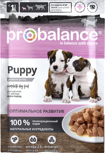 ProBalance Puppy Immuno для щенков, 85 гр — сбалансированный, 100% натуральный корм для щенков. Рацион разработан ведущими датскими ветеринарами. В корм вошли питательные гипоаллергенные ингредиенты, такие как натуральное мясо и куриный фарш. Выбору мяса уделено особое внимание — от качества животного белка (протеина) зависит гармоничное развитие растущего щенка. Особенность корма в его функциональности: вкус + польза для здоровья.