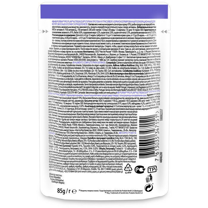 Производитель (завод): Пурина ООО "Нестле Россия" (Российская Федерация, 115054, Москва, Павелецкая пл., д.2, стр.1)