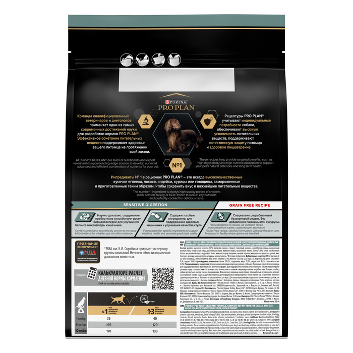 Специально для собак с такими особенностями наша команда квалифицированных ветеринарных специалистов и диетологов PURINA разработала PURINA® PRO PLAN® GRAIN FREE FORMULA. SENSITIVE DIGESTION сухой полнорационный корм для взрослых собак мелких и карликовых пород с чувствительным пищеварением, с высоким содержанием индейки. Это сбалансированный сухой корм для собак, который учитывает их индивидуальные потребности и содержит полный комплекс питательных веществ и микроэлементов, необходимых для их здоровья.