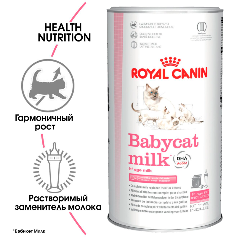 Royal Canin Babycat Milk - это полноценный заменитель кошачьего молока, подходящий котятам от самого рождения до отъема. Заменитель соответствует потребностям пищеварительной системы котенка, который не воспринимает лактозу, поэтому коровье молоко ему не подходит.