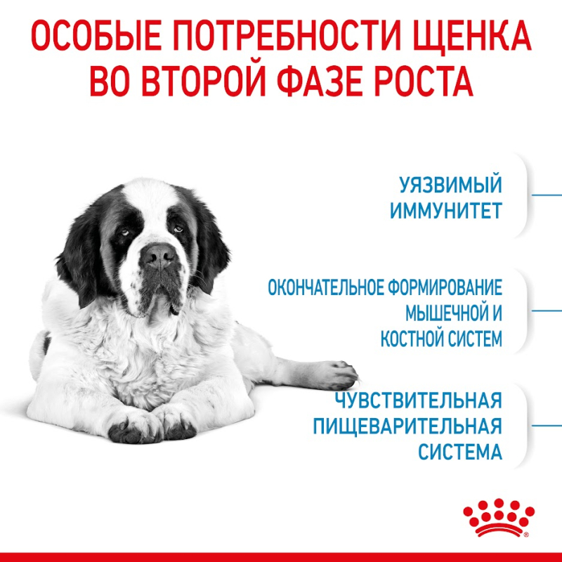 ROYAL CANIN® Giant Junior содержит оптимальное количество белка, обеспечивающее набор мышечной массы в возрасте от 8 до 18/24 месяцев.