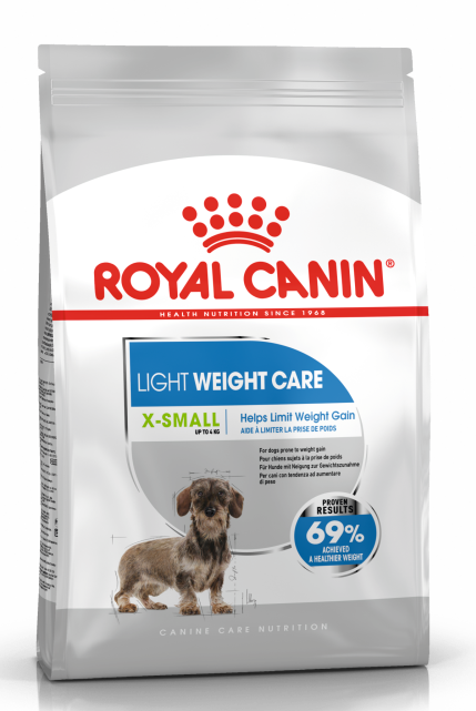 Корм ROYAL CANIN® Light Weight Care X-Small имеет доказанную эффективность. Согласно данным лабораторных исследований при употреблении корма ROYAL CANIN® Light Weight Care X-Small произошло снижение веса у 69% собак миниатюрных размеров в сравнении с обычным кормом для взрослых собак.