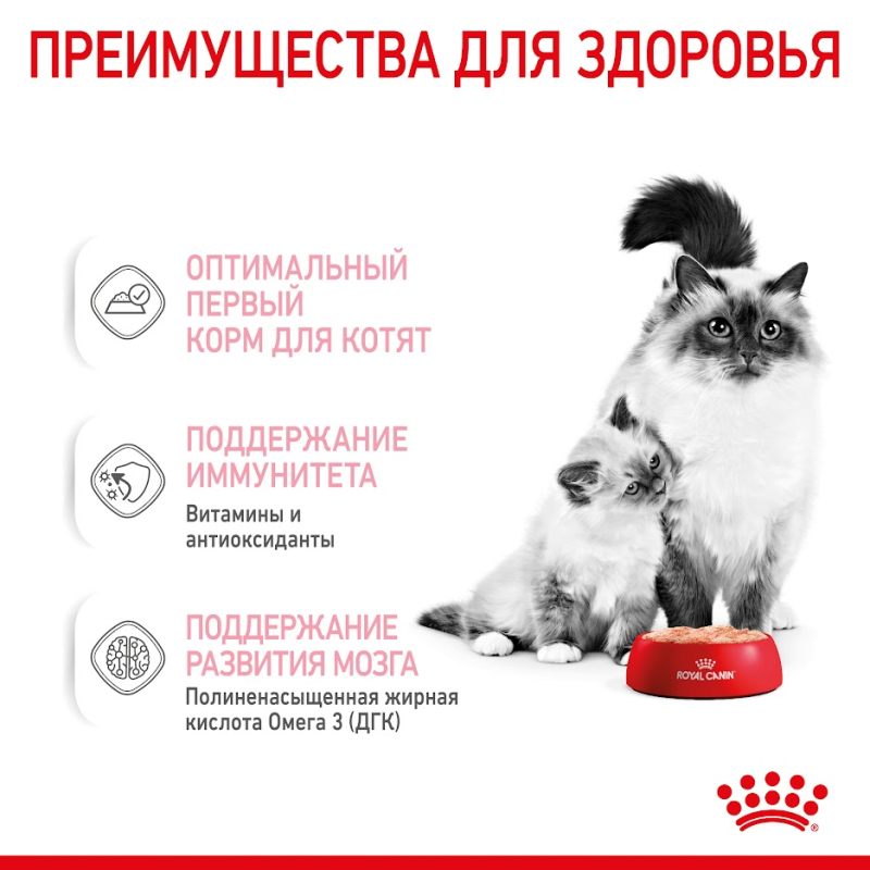 - поддержка иммунной системы. Стимулирует иммунную систему котенка во время первой фазы роста.