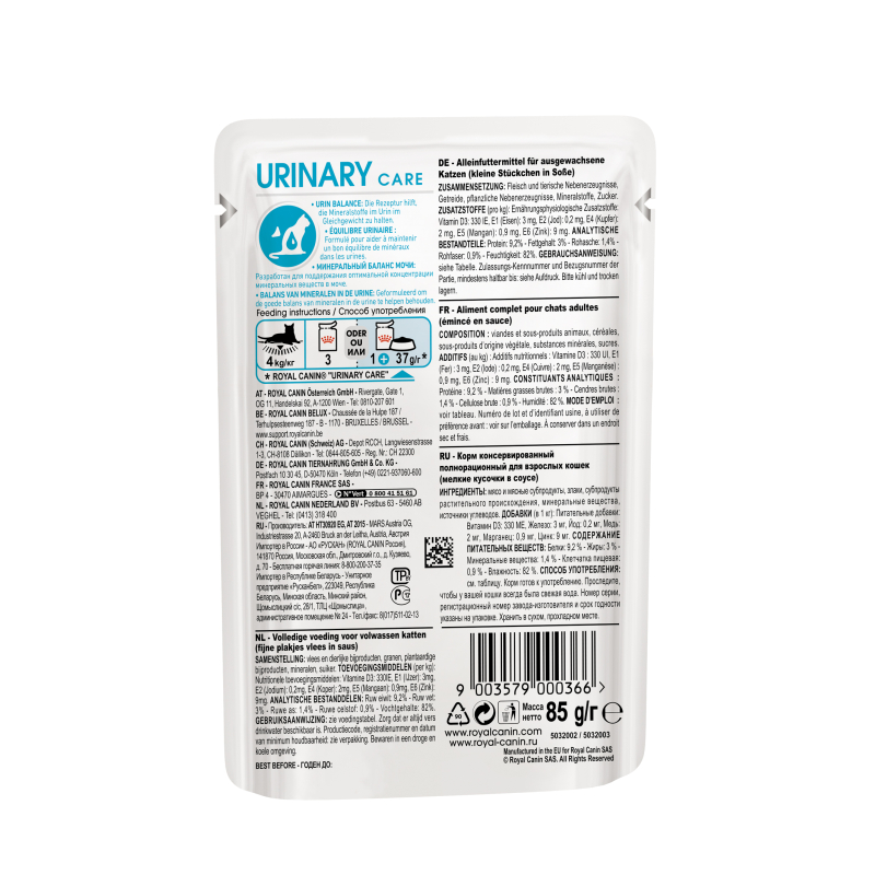 Рацион ROYAL CANIN® Urinary Care в соусе разработан специально для поддержания баланса минералов в моче животного и здоровья мочевыводящих путей.
