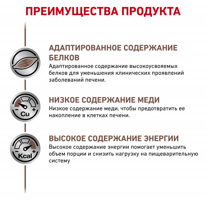 Корм консервированный полнорационный диетический для взрослых собак. ROYAL CANIN® HEPATIC (паштет) – это полнорационный диетический корм для собак, предназначенный для поддержания функции печени при хронической печеночной недостаточности и при избыточном накоплении меди в печени. Высококачественные белки. Умеренное содержание белков. Высокое содержание незаменимых жирных кислот и легкоусвояемых углеводов. Низкое содержание меди.