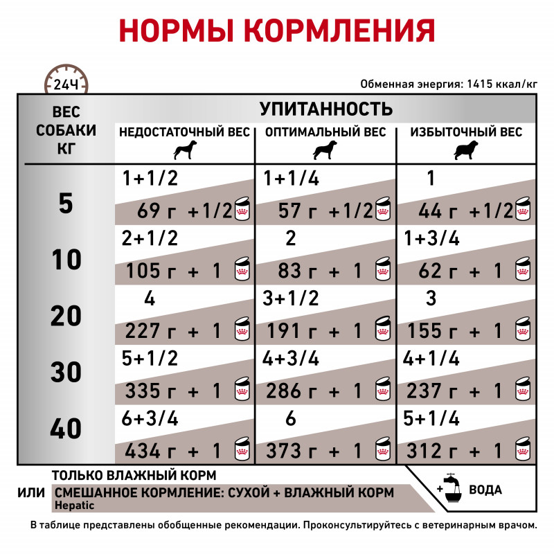 Рекомендации: посоветуйтесь с вашим ветеринарным врачом об употреблении или о продлении периода использования данного корма. Начальный курс применения корма HEPATIC (паштет) – 6 месяцев. .