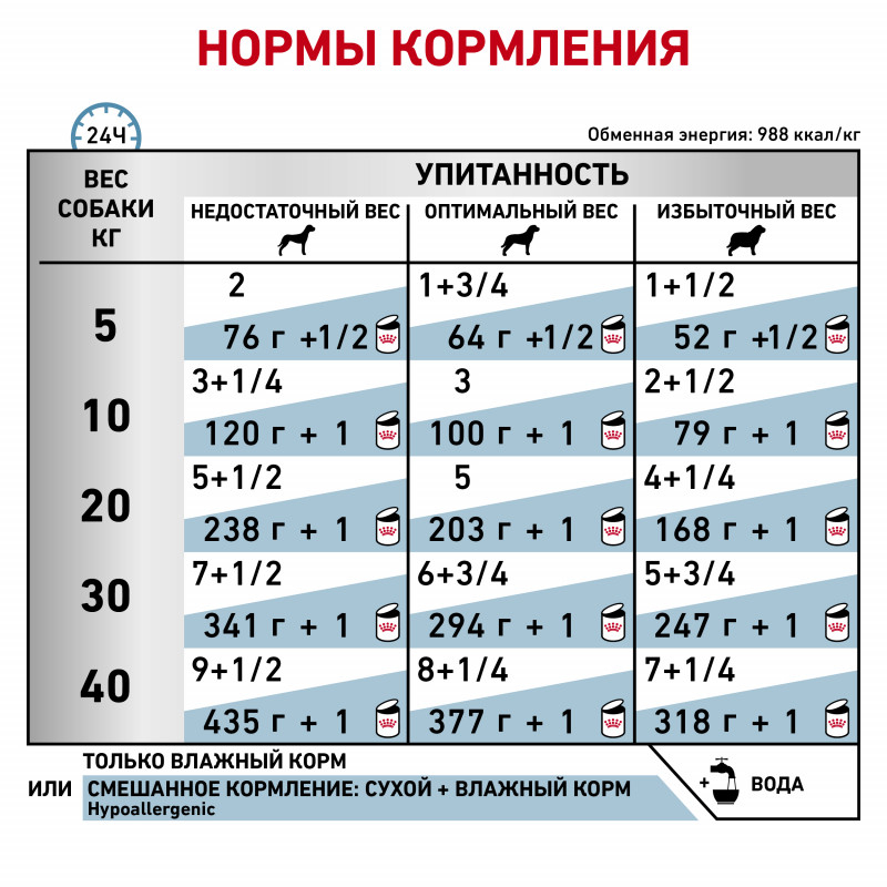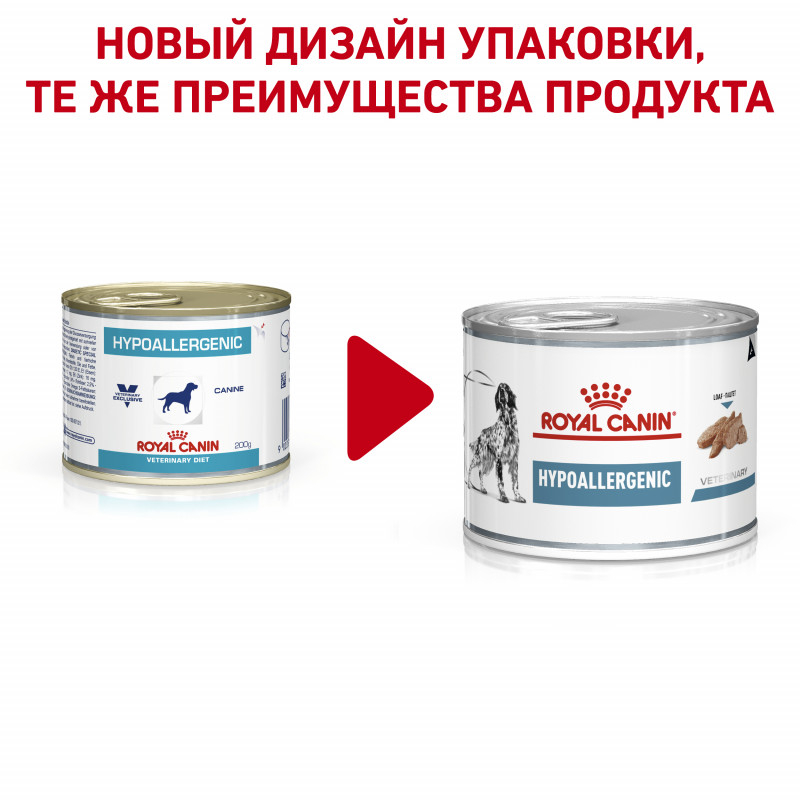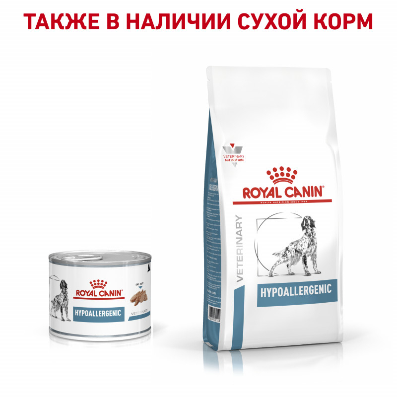 Влажный корм Hypoallergenic содержит гидролизированный соевый белок, как и гамма сухих продуктов Hypoallergenic, что позволяет комбинировать сухой и влажный рационы, либо использовать каждый вид отдельно, учитывая физиологические потребности и пищевые предпочтения собак.