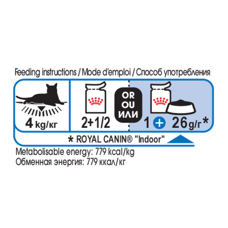 Кроме того, Indoor Sterilised в соусе включает в себя энергетическое соотношение белков, жиров и углеводов, интинктивно предпочитаемое большинством кошек, а низкая калорийность способствует чувству насыщения.
