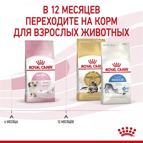 Продукт ROYAL CANIN® Kitten разработан с учетом потребностей в питательных веществах котят во второй фазе роста. Рацион предназначен для котят в возрасте от 4 до 12 месяцев, вступающих в период значительных перемен физического состояния и поведения.