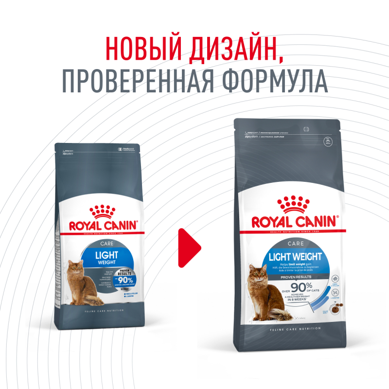 ROYAL CANIN® Light Weight Care обогащен L-карнитином, поддерживающим нормальный метаболизм жиров. Высокое содержание белков в сочетании с пониженным содержанием жиров позволяет сохранить мышечную массу без набора веса.