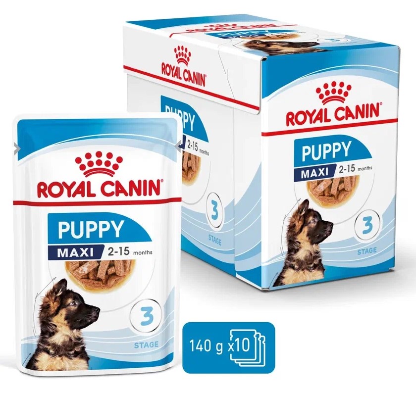 Продукт «ROYAL CANIN® Maxi Puppy кусочки в соусе» для щенков крупных собак в возрасте до 15 месяцев (вес взрослой собаки от 26 до 44 кг) разработан с учетом их потребностей в питательных веществах.