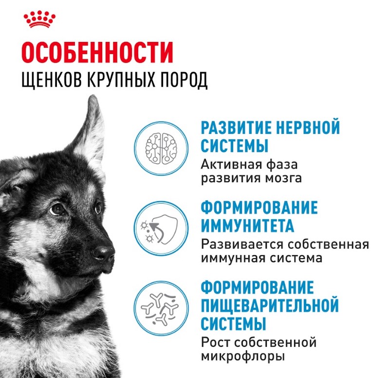 В возрасте 15 месяцев период роста подойдет к завершению, и потребности вашего щенка в питательных веществах изменятся. Ему будет необходим другой рацион, разработанный специально для взрослых собак крупных пород. В этом возрасте вы сможете перевести своего питомца на корм ROYAL CANIN® Maxi Adult, представленный в виде.