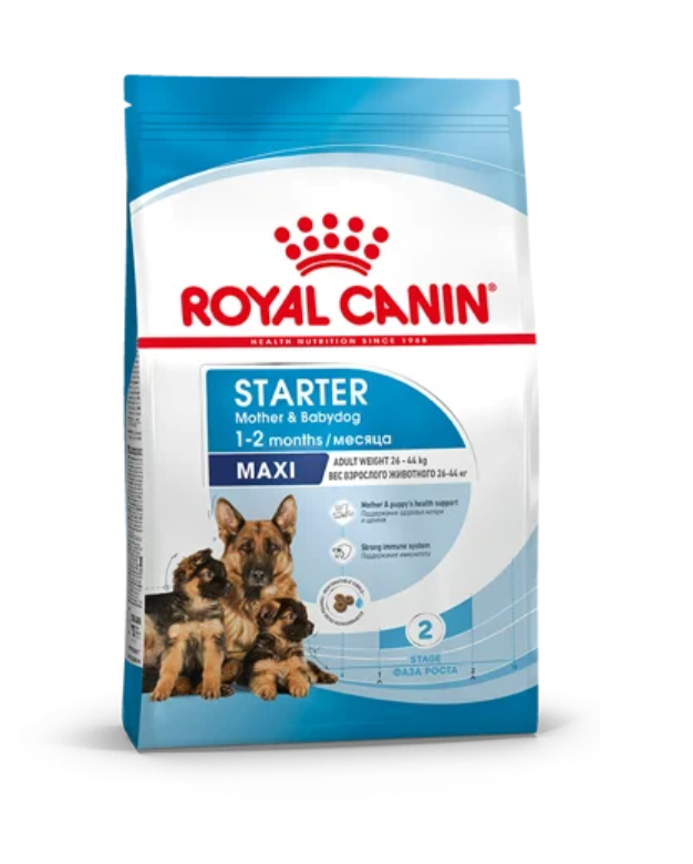 Продукт ROYAL CANIN® Maxi Starter Mother & Babydog разработан с учетом потребностей в питательных веществах матери и ее новорожденных щенков. Эта формула подходит для взрослых крупных собак весом от 26 до 44 кг, а также для щенков в возрасте до 2 месяцев.