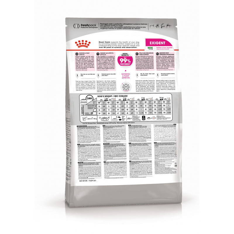 Корм ROYAL CANIN® Exigent Mini имеет доказанную эффективность. ROYAL CANIN® было проведено исследование, согласно которому корм ROYAL CANIN® Exigent Mini выбрали до 99% собак.