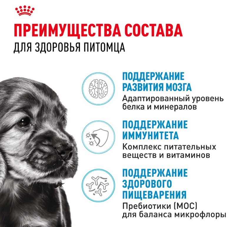 Специально разработанный рацион обогащен полиненасыщенной жирной кислотой Омега-3 (ДГК), которая, как научно доказано, поддерживает развитие мозга щенка.Этот продукт также поддерживает формирование здоровой иммунной системы щенка за счет содержания питательных веществ с научно доказанной эффективностью, таких как витамины С и Е. Благодаря сочетанию полезных пребиотиков (МОС) и легкоусвояемых белков формула поддерживает баланс микрофлоры кишечника, способствуя здоровому пищеварению.