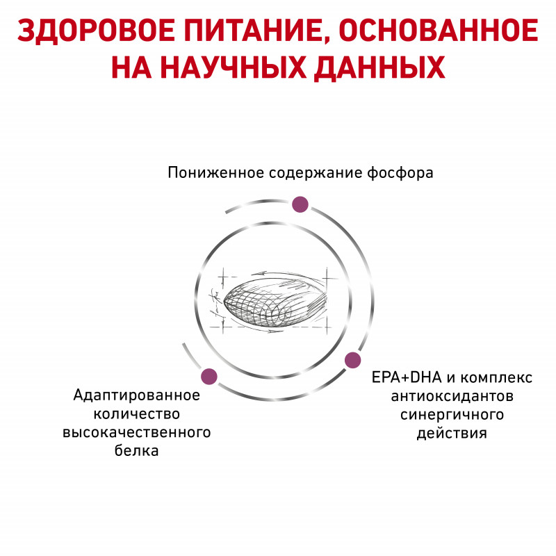 1) Диетологическое лечение ХПН: Формула продуктов специально разработана для поддержания почечной функции при ХПН. Продукты отличаются низким содержанием фосфора, содержат комплекс антиоксидантов, жирные кислоты ЕРА и DHA. При ХПН почки теряют способность надлежащим образом выводить фосфор. Низкое содержание фосфора в продукте способствует замедлению развития болезни. При кормлении диетическим кормом с адаптированным содержанием рыбьего жира (источника незаменимых жирных кислот ЕРА и DHA) повышается скорость клубочковой фильтрации.