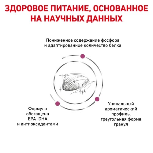 Корм сухой полнорационный диетический для взрослых кошек с пониженным аппетитом для поддержания функции почек при острой или хронической почечной недостаточности.