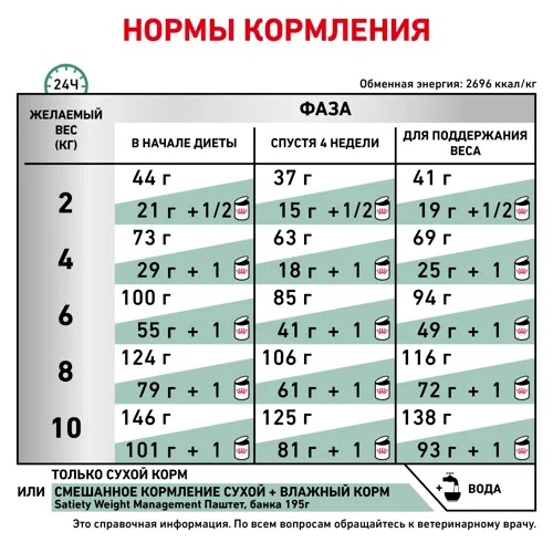 Примечание: поддерживающий рацион необходимо корректировать с учетом изменения веса собаки.