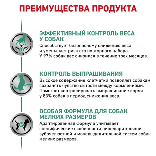Корм сухой полнорационный диетический для взрослых собак мелких размеров весом от 1 до 10 кг, рекомендуемый для снижения веса. Ветеринарная диета: