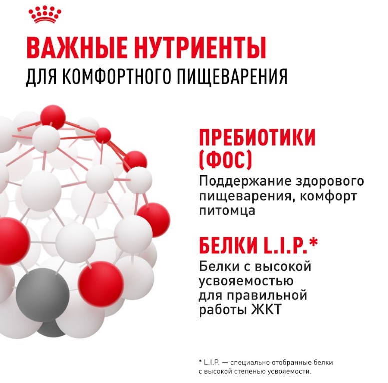 1) Оптимальное пищеварение: повышенная чувствительность пищеварительной системы некоторых кошек приводит к возникновению жидкого стула. Корм Sensible 33 содержит эксклюзивное сочетание нутриентов (L.I.P.*), помогающих избежать проблем с пищеварением, и пребиотики, обеспечивающие баланс кишечной флоры.