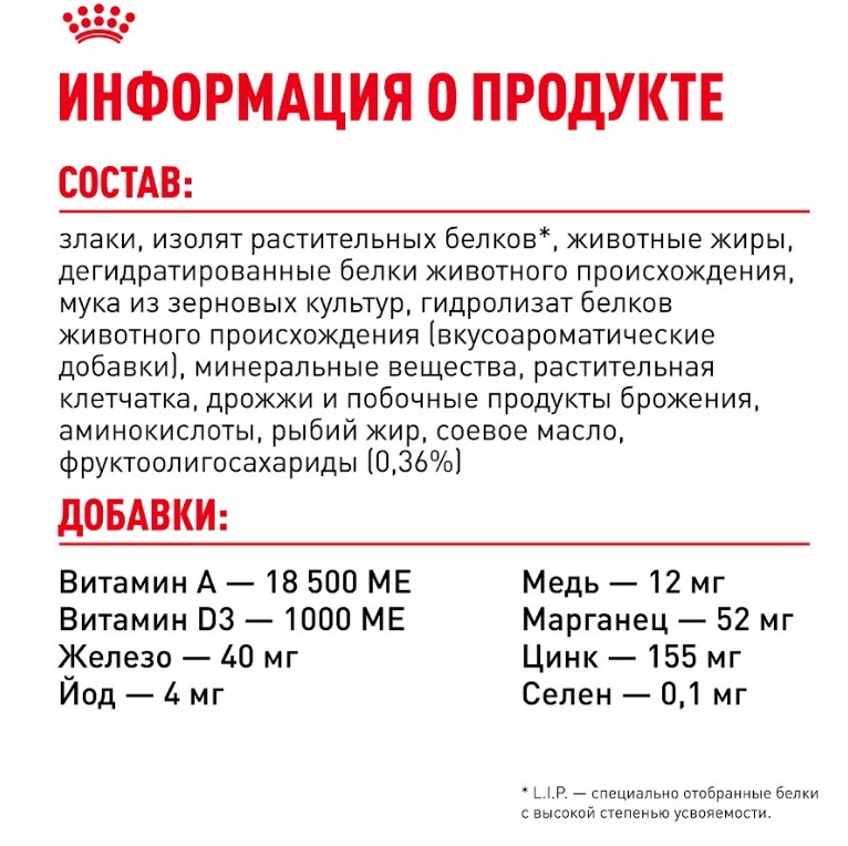 *L.I.P.: специально отобранные белки с высокой степенью усвояемости.
