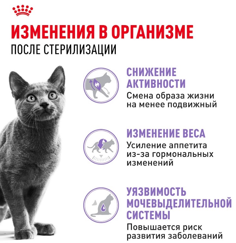 После стерилизации необходимо пересмотреть рацион кошки с учетом изменившихся потребностей в энергии.