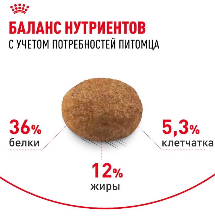 СОДЕРЖАНИЕ ПИТАТЕЛЬНЫХ ВЕЩЕСТВ: Белки: 36 % - Жиры: 12 % - Минеральные вещества: 7,7 % - Клетчатка пищевая: 5,5 % - Фосфор: 0,73 % - EPA & DHA: 3,1 г/кг.
