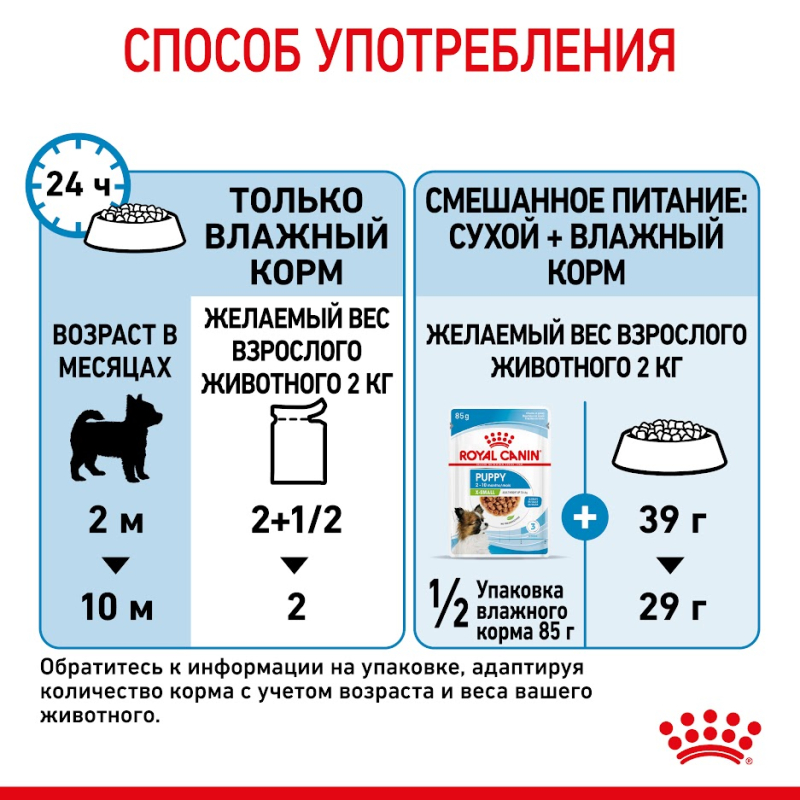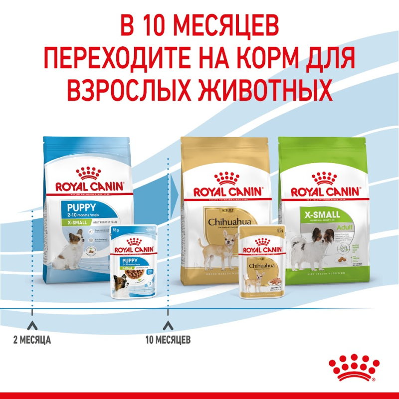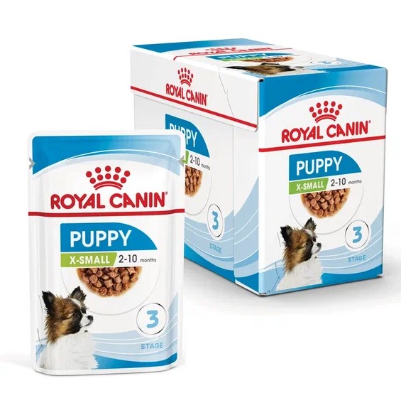 Royal Canin X-Small Puppy (в соусе) - корм консервированный полнорационный для щенков собак миниатюрных размеров в возрасте от 2 до 10 месяцев.