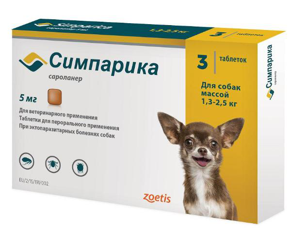 Симпарика Таблетки от блох и клещей для собак 1,3-2,5 кг, УПАКОВКА