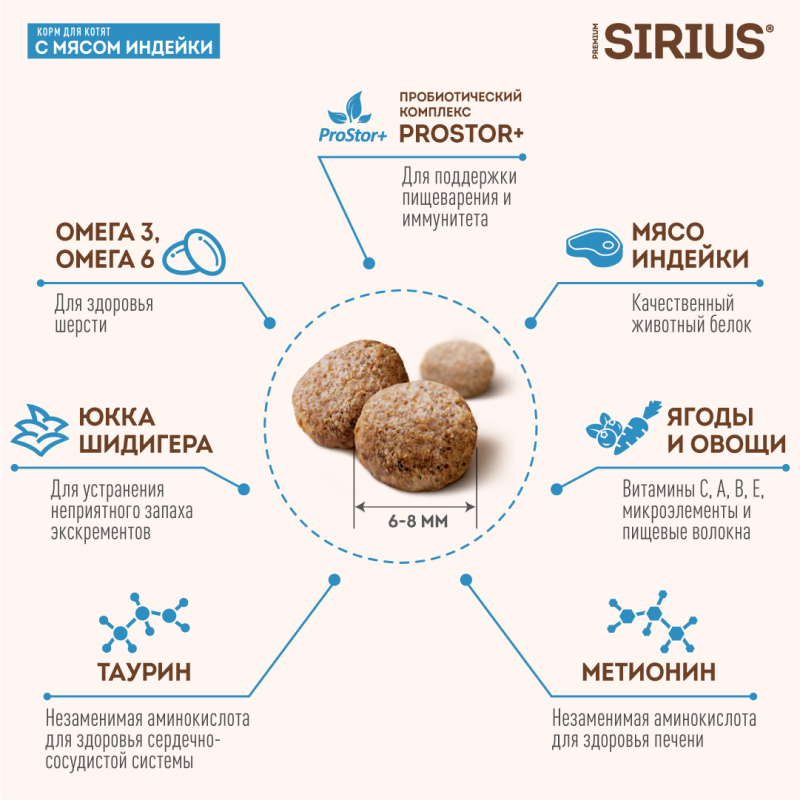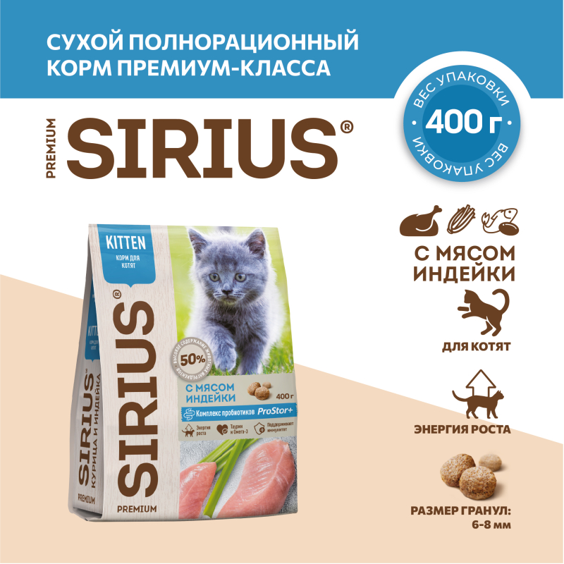 SIRIUS сухой корм для котят, с мясом Индейки 400гр