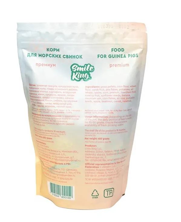 Полнорационный корм для морской свинки изготовлен в Беларуси из экологически чистого, отборного сырья. У морских свинок достаточно капризная пищеварительная система, поэтому не рекомендуется включать в их рацион такие продукты как сахар, костная и рыбная мука, бобы крупного помола. Наши корма не содержат искусственных подсластителей, вместо костной и рыбной муки мы используем кукурузную муку, которая очень хорошо усваивается и улучшает пищеварительный процесс вашего питомца, что в сочетании с постоянным контролем качества гарантирует здоровье и долгую жизнь Вашего питомца.