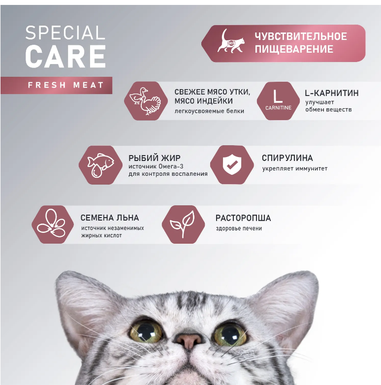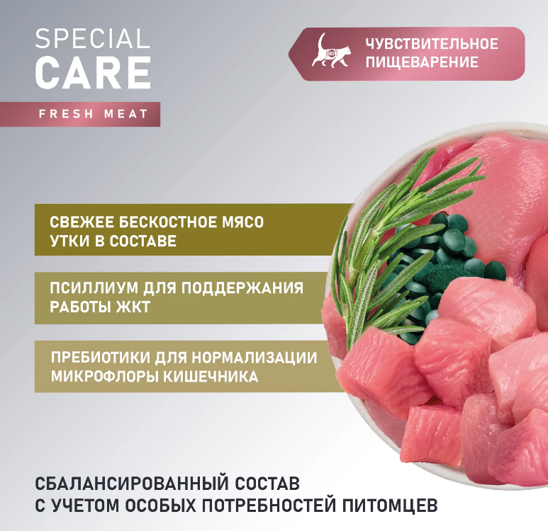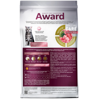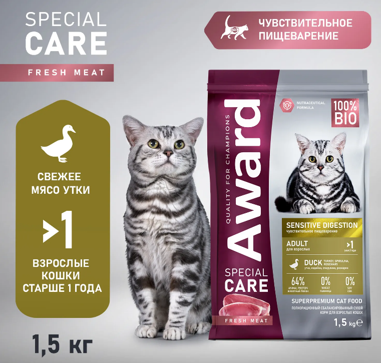 Сухой корм AWARD SPECIAL CARE Sensitive Digestion для взрослых кошек с чувствительным пищеварением со свежим мясом утки 1,5кг