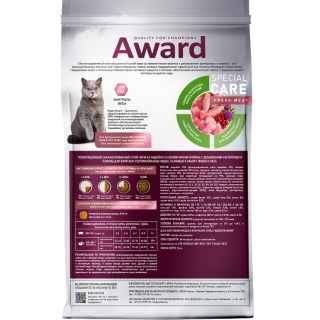 Сухой корм AWARD SPECIAL CARE Weight Control для взрослых стерилизованных кошек для контроля веса со свежим мясом кролика 1,5кг