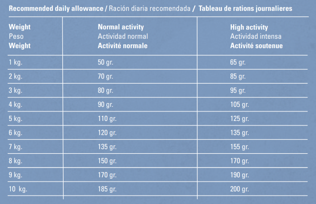Аналитические компоненты: белок: 29 %, содержание жира: 19 %, сырая клетчатка: 1,9 %, сырая зола: 7,1 %, влага: 8,5 %, кальций 1,2 %, фосфор 1 %, натрий 0, 5%, калий 0,6%, магний 0,1%, омега-3: 2%, омега-6: 2,5%, глюкозамин: 1400 мг/кг, хондроитин: 1000 мг/кг.